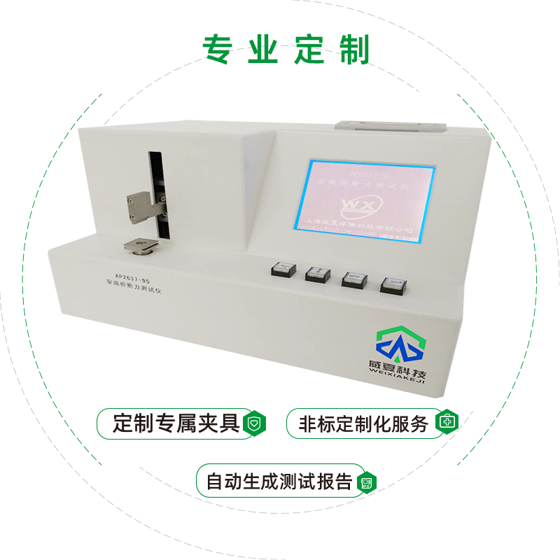 威夏科技 AP2637-95 安瓿折斷力測試儀是國家檢驗生產(chǎn)廠家產(chǎn)品性能的高效檢測設備。設備應用:安瓿折斷力測試儀主要用于測定安瓿瓶折斷力的物理特性,是鑒定安瓿瓶的重要手段之一。菜單選擇規(guī)格、標準支架、上行、下行、時間、標定、測試次數(shù)、實時顯示折斷力及折斷力曲線,并可有機載打印機打印。