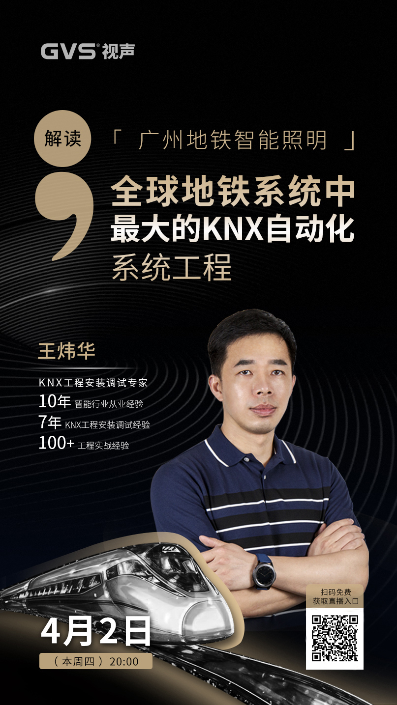 42日(本周四)晚上8點(diǎn),GVS直播間邀請(qǐng)了KNX工程安裝調(diào)試專家王煒華,在線解讀「廣州地鐵智能照明」。